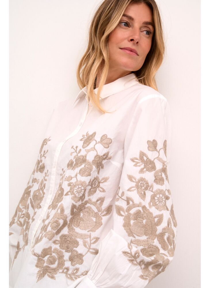 Witte Blouse met Elegante Bloemenborduursel