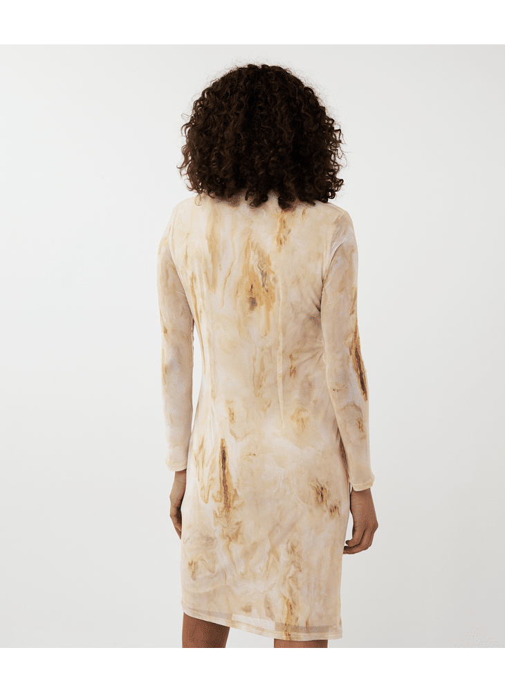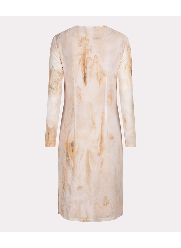 Beautiful draped bodycon dress in the print Marble Dream. The dress has a gold buckle detail at the waist and except for the sleeves the entire dress is lined which creates a playful effect.