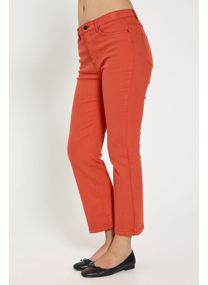 Maak een statement met deze trendy flared jeans in een opvallende terracotta rode kleur. Met een flatterende pasvorm en een licht uitlopende pijp geeft deze jeans elke outfit een moderne en elegante touch. Perfect voor zowel casual als meer geklede gelegenheden.