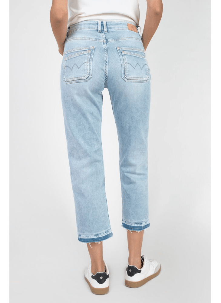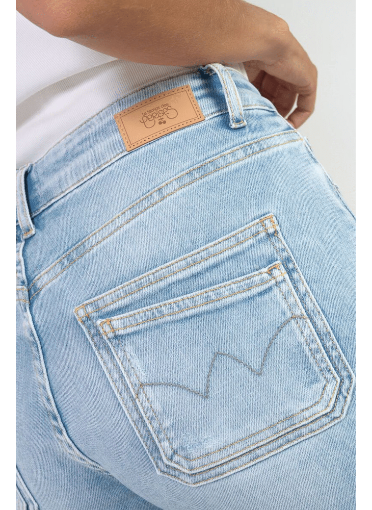 With its Mom fit, the 400/17 will enhance your figure with its slimming effect at the waist and its high block dressed up with a fancy closure. Its stretchy and comfortable fabric with an authentic and vintage wash reflects the expertise of our jeaners. Its regular legs and ankle-length design provide a stylish look.