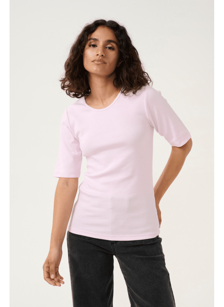 Vul je garderobe aan met dit zachte en comfortabele lichtroze knit. Het eenvoudige, maar stijlvolle ontwerp met korte mouwen en een ronde hals zorgt voor een moeiteloze en veelzijdige look. Gemaakt van hoogwaardig materiaal dat de hele dag door comfort biedt. Dit t-shirt is perfect voor een casual dagje uit of een ontspannen middag thuis. Voeg wat kleur toe aan je dagelijkse outfits met dit veelzijdige en gemakkelijk te combineren t-shirt.