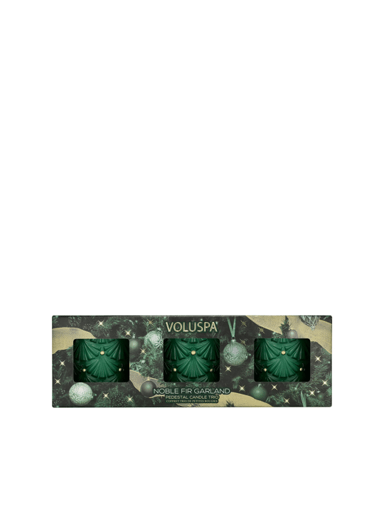 Delight the senses and light up the room with Noble Fir Garland Petite Pedestal Candles. Adorn the mantle and embellish your holiday decor with this festive treat for the senses. Light one, two, or all three. There is no excess with holiday decor!