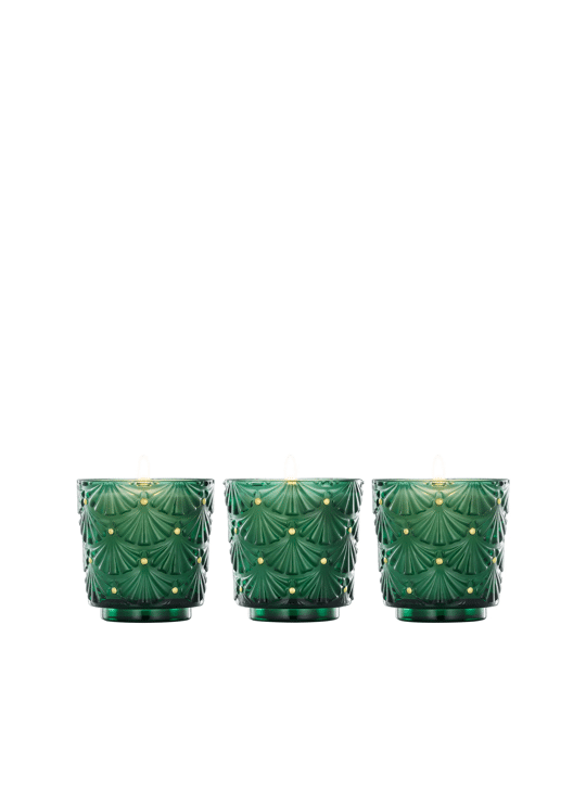 The clock strikes twelve, and the house is still, glowing with anticipation for festivities ahead. Enchanting emerald green and fresh Rosemary garland drape the warm fireplace. The centerpiece of celebration, the tree, reaches out with fragrant branches of Noble Fir and Cedarwood, dusted with festive Cardamom spice. Adorned in the spirit and sparkle of the holidays, a tapestry of Cashmere Musk and Warm Amber lights cast shadows dancing into the morning light. The Holidays have arrived.