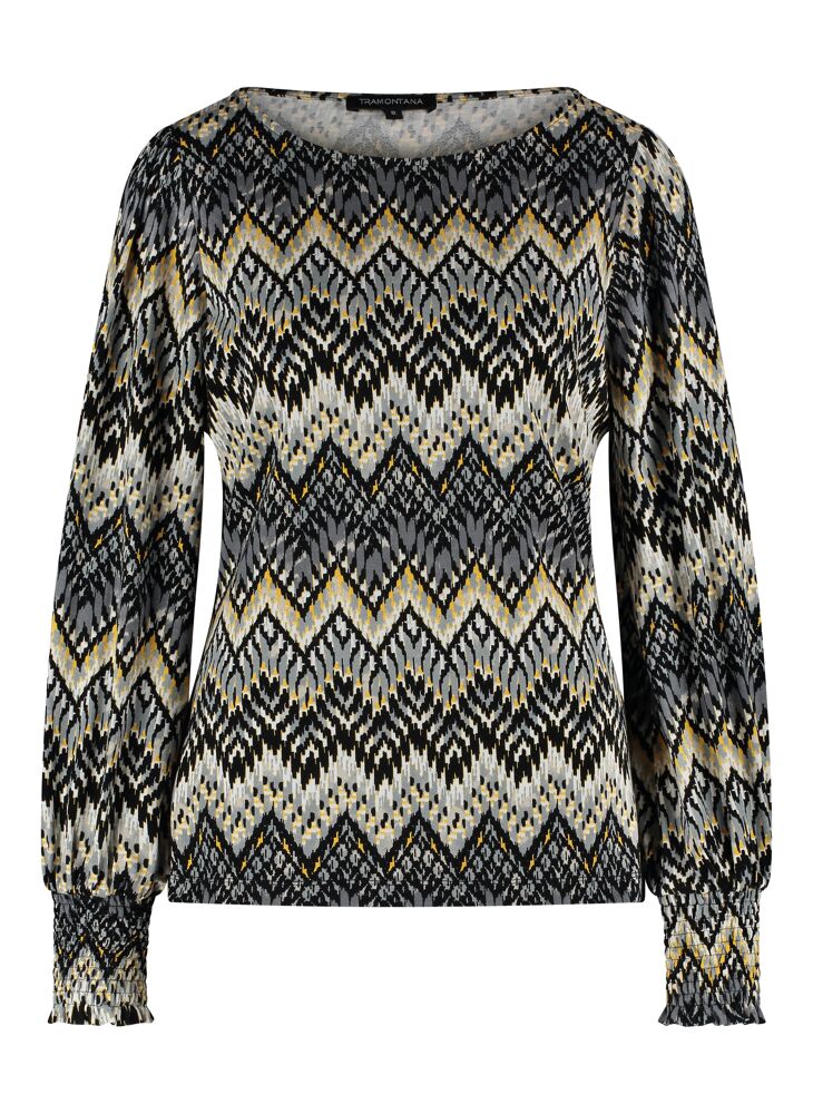Ontdek de Top Flame Stitch met een opvallende Print Greys die zorgt voor een trendy look. Gemaakt van 95% viscose en 5% elastaan, waardoor het comfortabel en stretchy is. Een must-have voor elke fashionista!