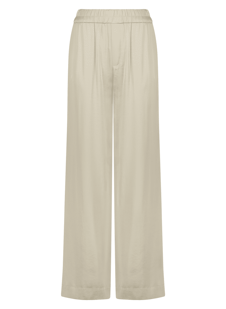 De lichte glans van de stof voegt een vleugje luxe toe, waardoor deze broek ideaal is voor elke outfit. Beschikbaar in een tijdloze tint, is het een veelzijdig kledingstuk dat gemakkelijk te combineren is.