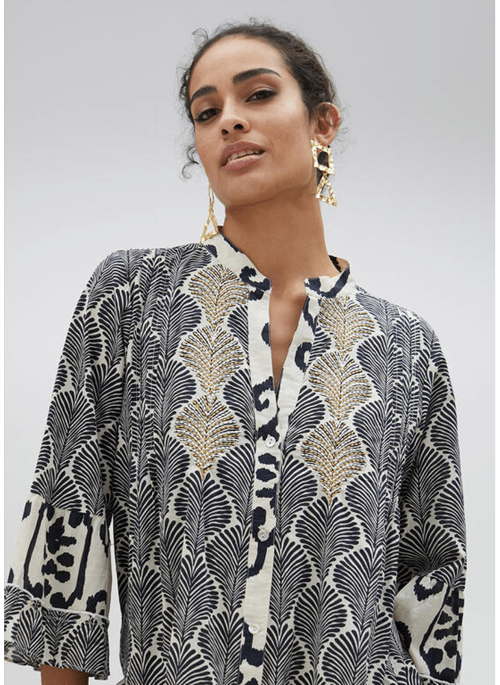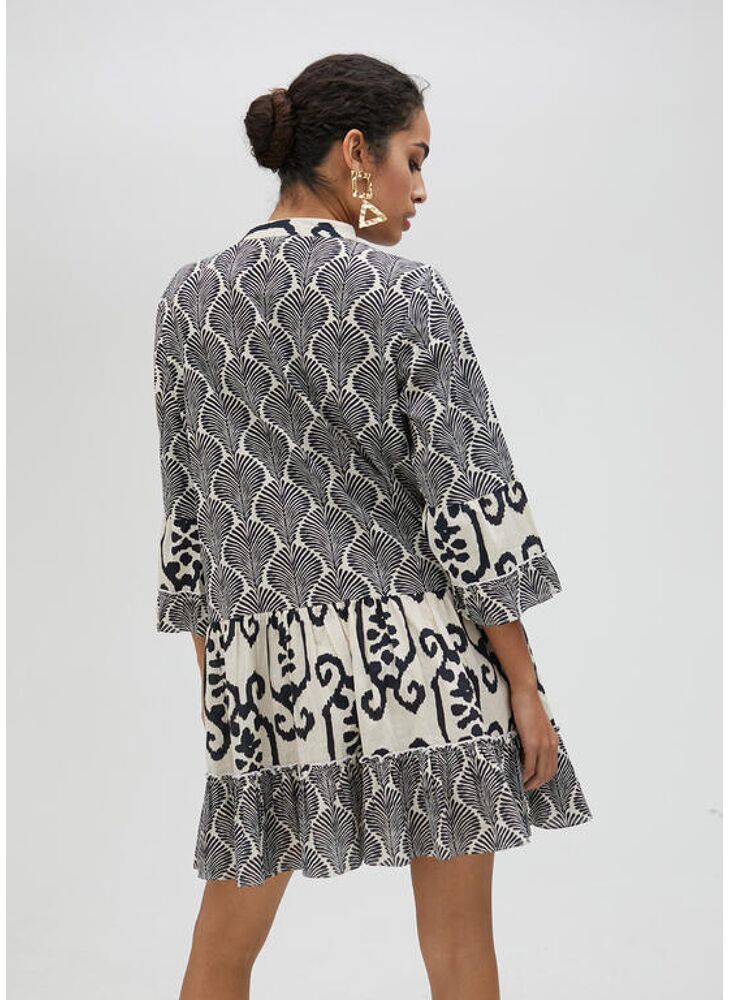 Vestido corto manga 3/4 estampado combinado